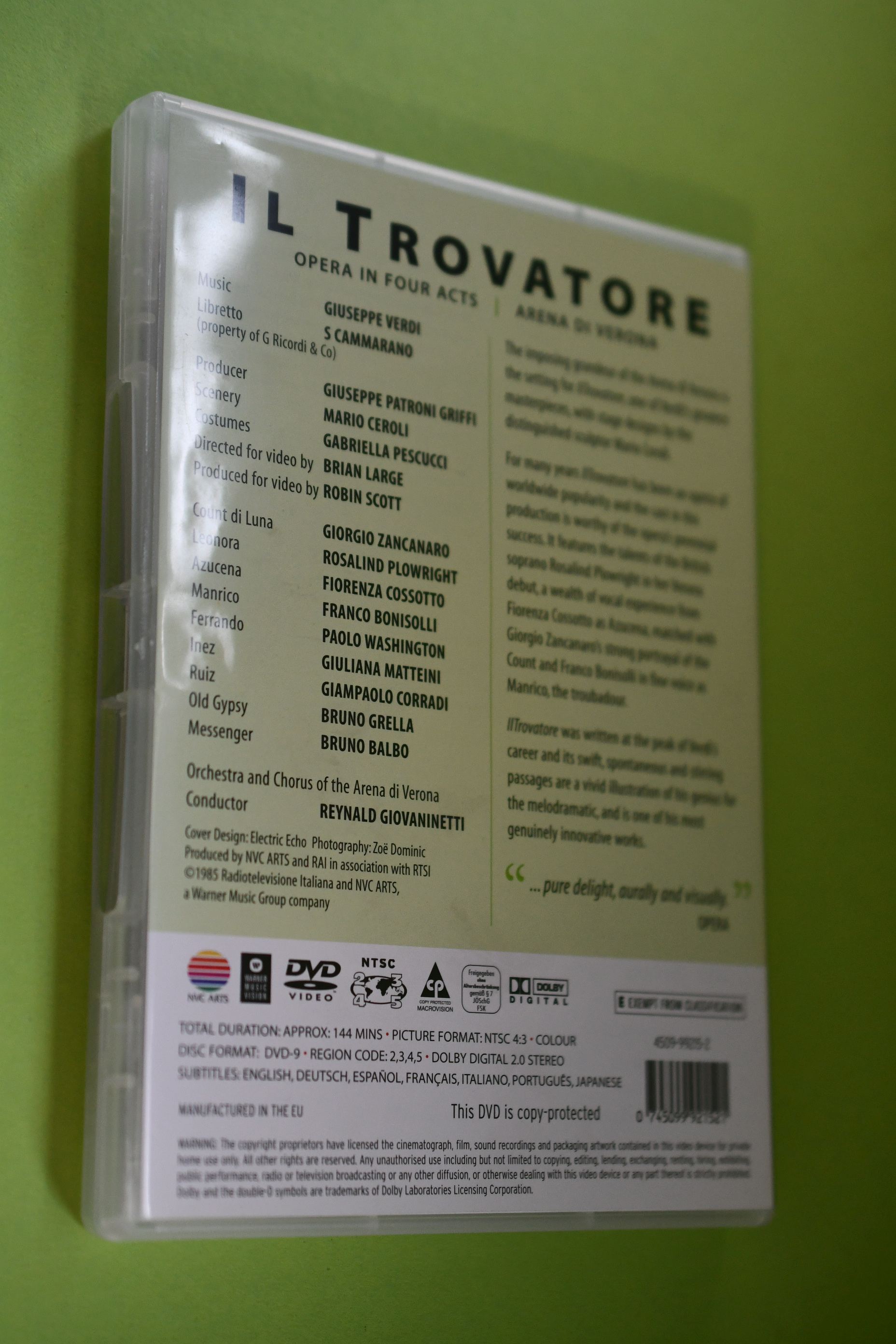 Zustand: 1 DVD tadellos in transparenter Kunststoffhülle, sehr gut --- Inhalt: Texte in englisch, gesungen wird Italienisch. Gesamtlaufzeit 144 min. Untertitel englisch, deutsch, spanisch, französisch, italienisch, portugiesisch und japanisch T1-6 ISBN: 0745099921521