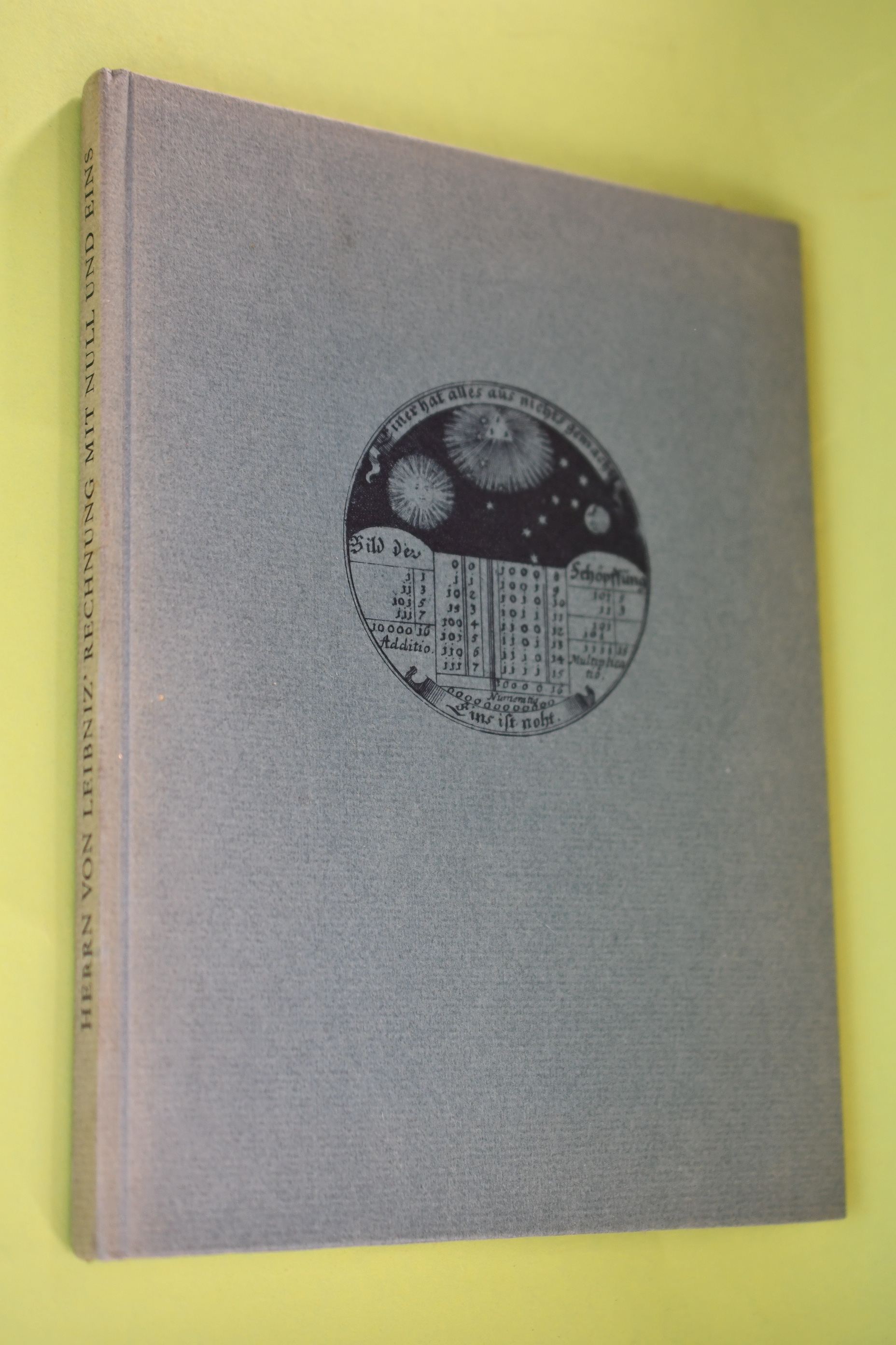 59 S., 24cm Pappe Zustand: blauer Pappband (Farben im Foto sind verfälscht), Rücken gering gebräunt, guter Zustand. Einbunden sind einige Faksimiledrucke auf Büttenpapier/Briefpapier (deshalb teils Frakturschrift, teils Handschrift Sütterlin) --- Inhalt: anlälich des 250. Todestages von Leibniz von der Siemens AG herausgegeben. Montiertes Frontispiz, illustriert. Faksimiliedrucke teils französisch, teils lateinisch. Über die Basis unserer digitalen Welt, das duale Zahlensystem. ROS2-3 0 (weniger anzeigen)